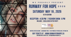 Runway for HOPE Ottawa is a semi-annual charity event based in Ottawa Ontario. It is designed to promote Canadian and International fashion designers, and to raise money for a cause. The event has the support and participation of media, personalities, vendors and entrepreneurs from across the country. Proceeds for the upcoming 2026 event will be going towards the CHEO Foundation.